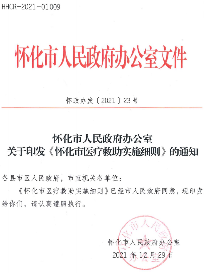 现将《怀化市人民政府办公室关于印发<怀化市医疗救助实施细则>的通知》(怀政办发〔2021〕23号)转发给你们,请认真遵照执行。