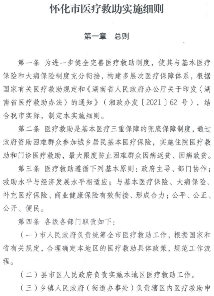 <怀化市医疗救助实施细则>的通知》的通知