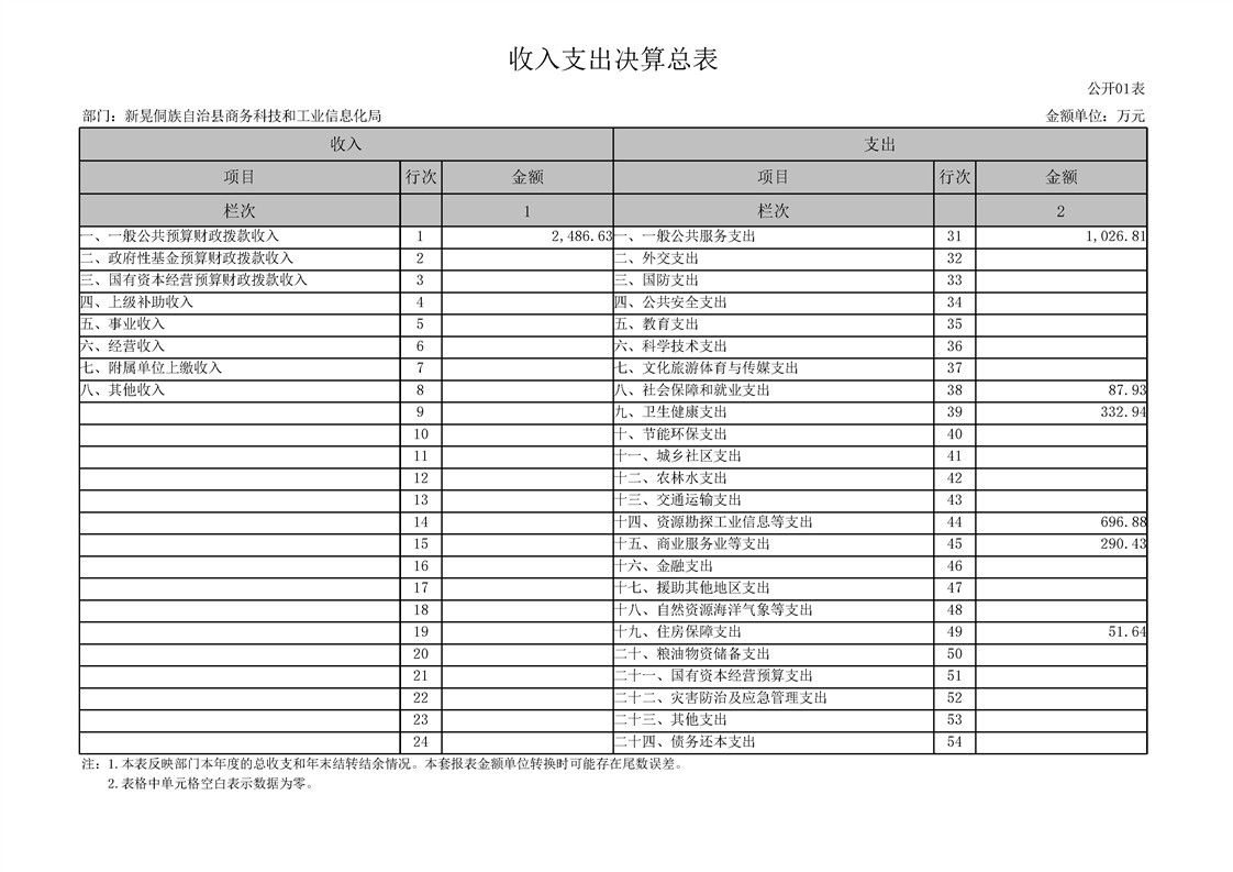 2024年度新晃侗族自治县商务科技和工业信息化局部门决算公开表.xlsx