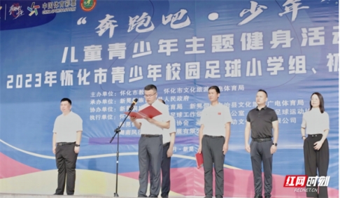 7月4日,由怀化市教育局、怀化市文化旅游广电体育局主办的“奔跑吧 ·少年”儿童青少年主题健身活动暨2023 年怀化市青少年校园足球小学组、初中组联赛在新晃拉开帷幕。新晃侗族自治县委宣传部部长杨荣昌致辞,对各支参赛队伍的到来表示热烈欢迎,并表示新晃将高质量做好赛区各项保障工作,为各队创造良好的比赛环境。