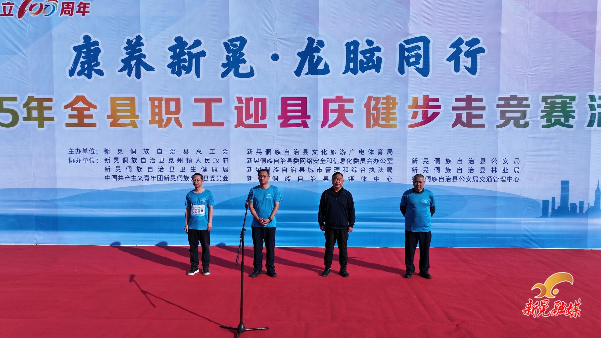 为庆祝中华全国总工会成立100周年,迎接新晃侗族自治县成立70周年,11月21日,我县举办“康养新晃·龙脑同行”2025年全县职工迎县庆健步走竞赛活动。县委副书记、县长杨鹏宣布活动开始,县领导潘世新、夏崇源等参加。