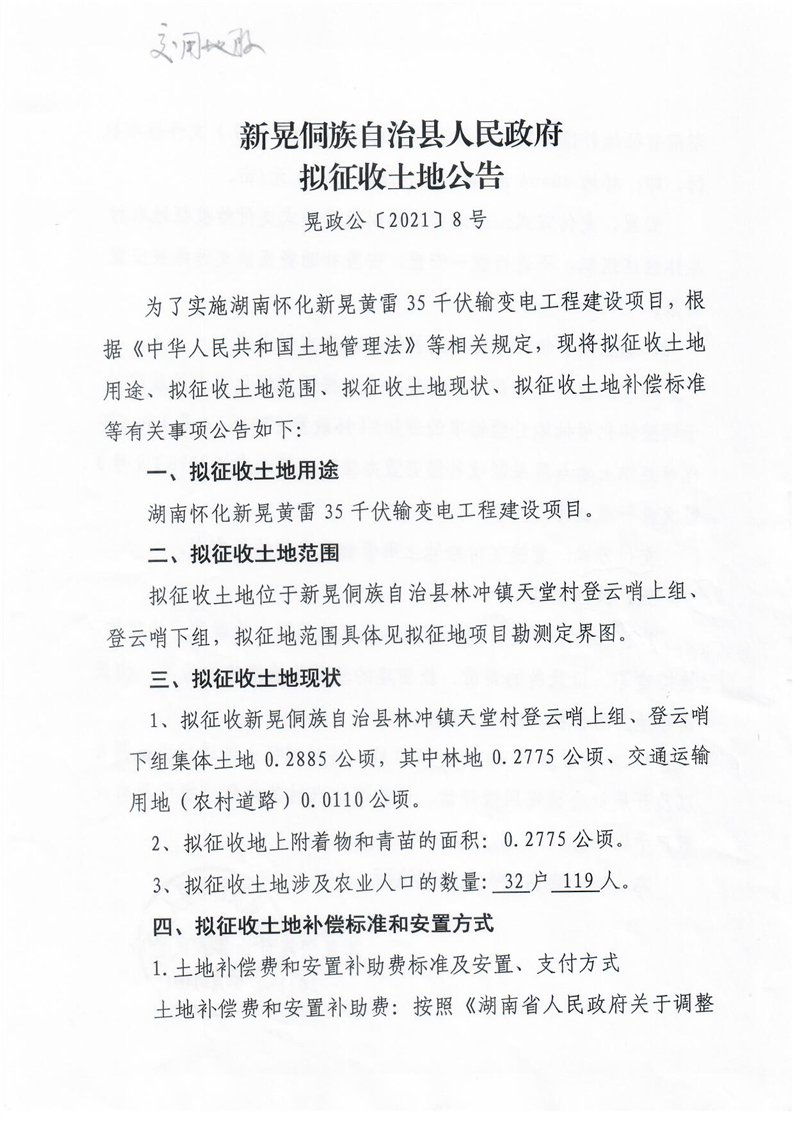 黄雷35千伏输变电工程建设项目拟征收土地公告