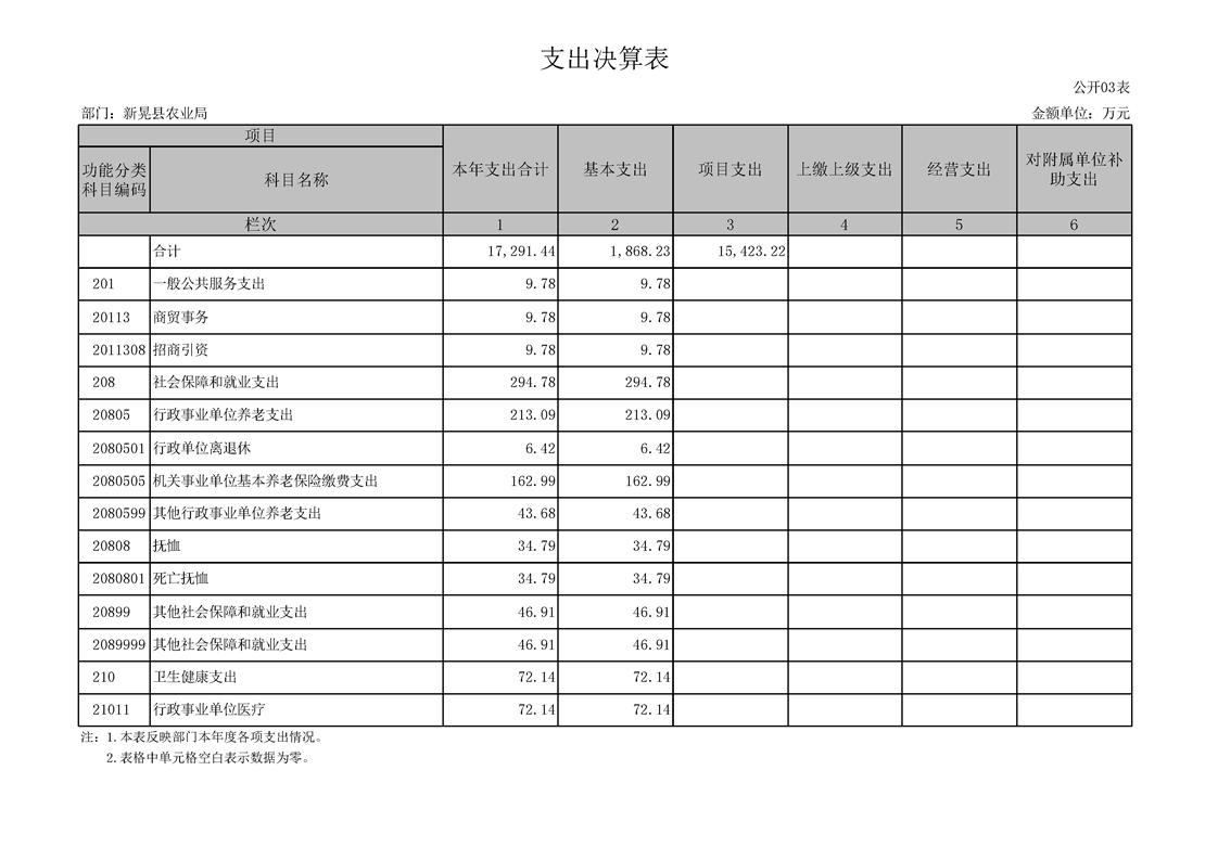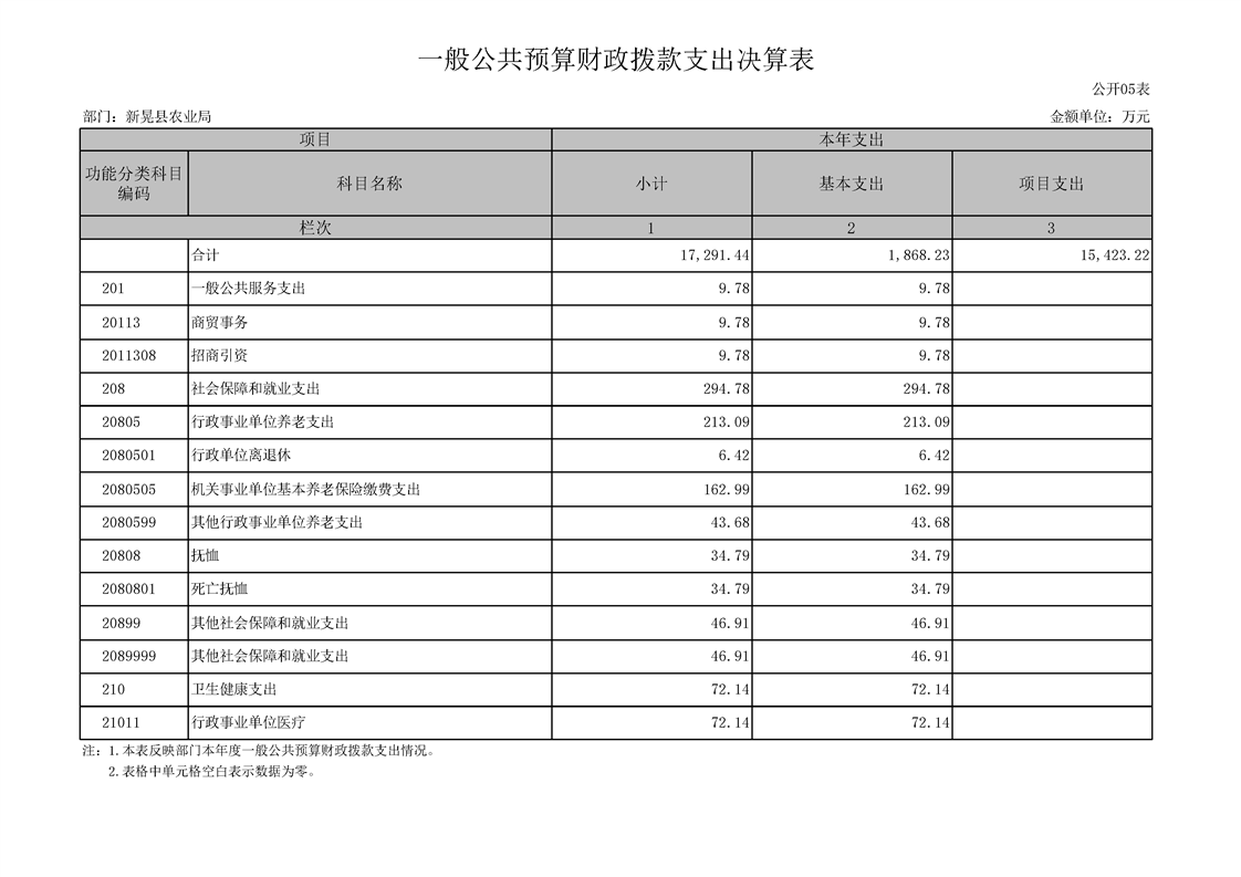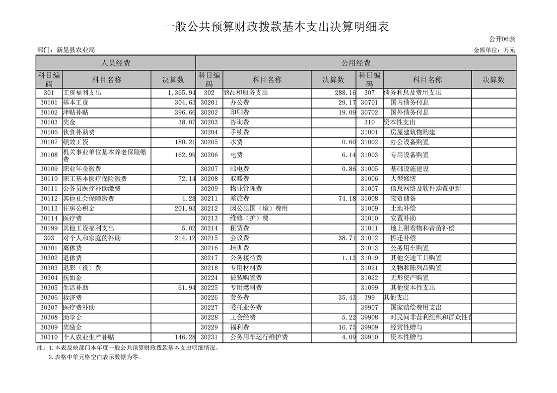 2024年度新晃侗族自治县农业农村局部门决算公开表.xlsx