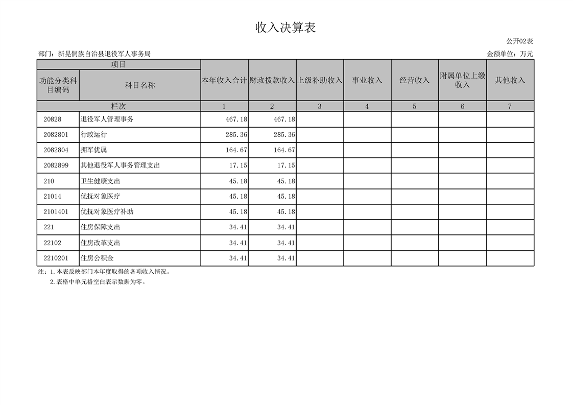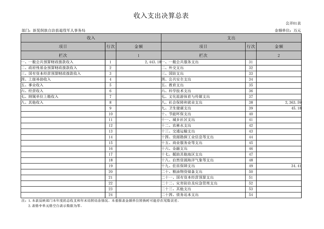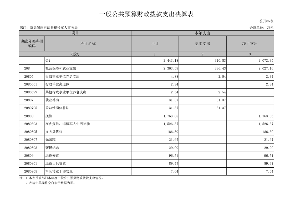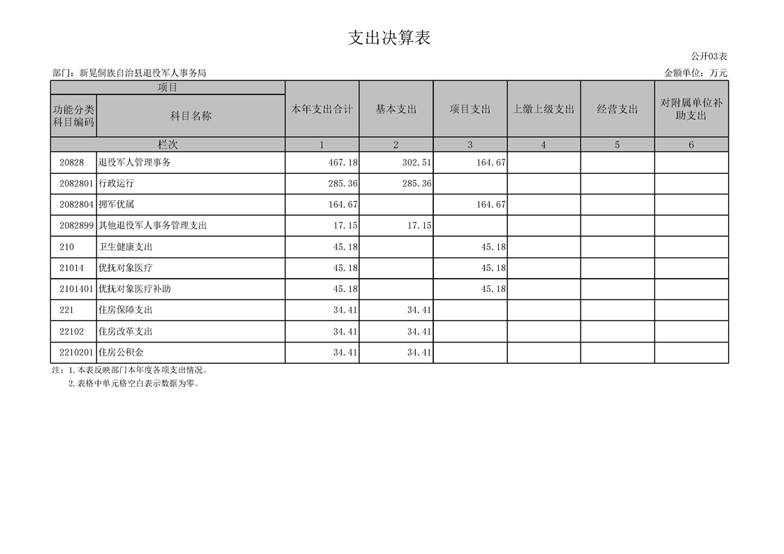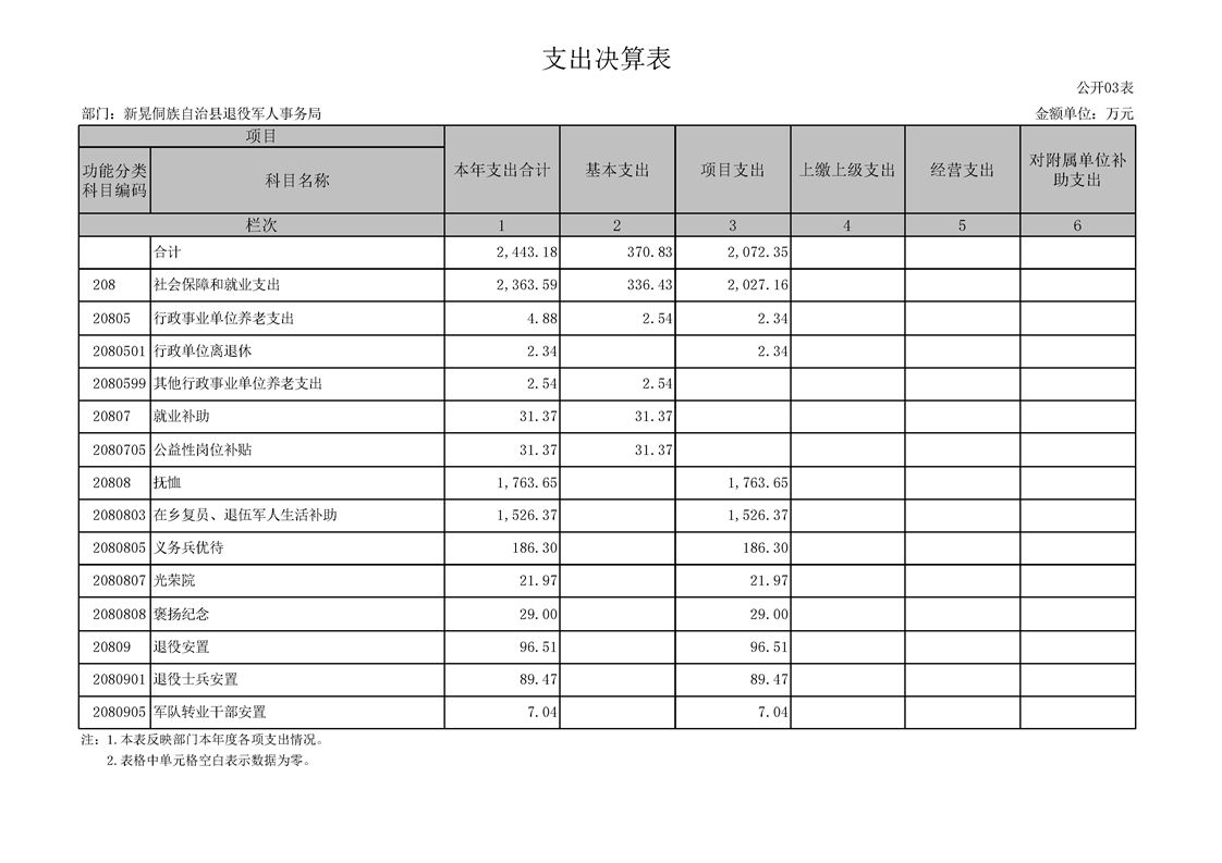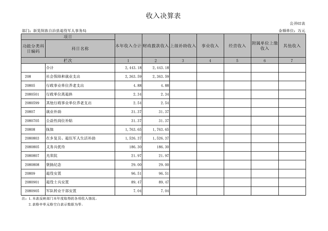2024年度新晃侗族自治县退役军人事务局部门决算公开表.xlsx