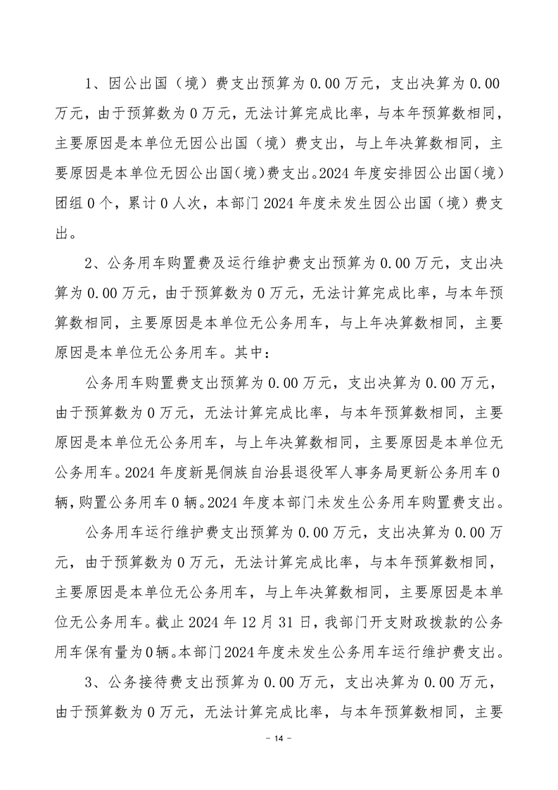 2024年度新晃侗族自治县退役军人事务局部门决算