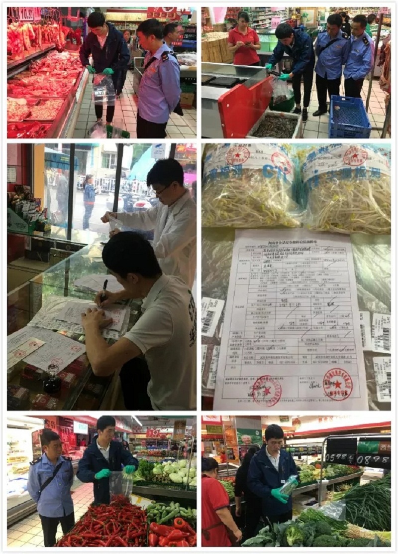 此次抽检以佳惠超市、遇见你音乐餐厅、象山印象、施秉漂城牛肉馆等经营单位为重点。并根据辖区内食用农产品销售和消费特点,品种包括黄豆芽、黄瓜、辣椒、小白菜、牛肉、鸡肉、鱼肉等,检测项目以食用农产品中农药残留、兽药残留、重金属等安全性指标为重点。通过监督抽检,排查不合格农产品,对经抽查检验发现的问题食用农产品和抽检不合格的单位将依法进行严厉查处,并将结果通过“新晃县人民政府门户网站”和“新晃食品药品工商质量监督管理局”微信公众平台及时向社会公示。
