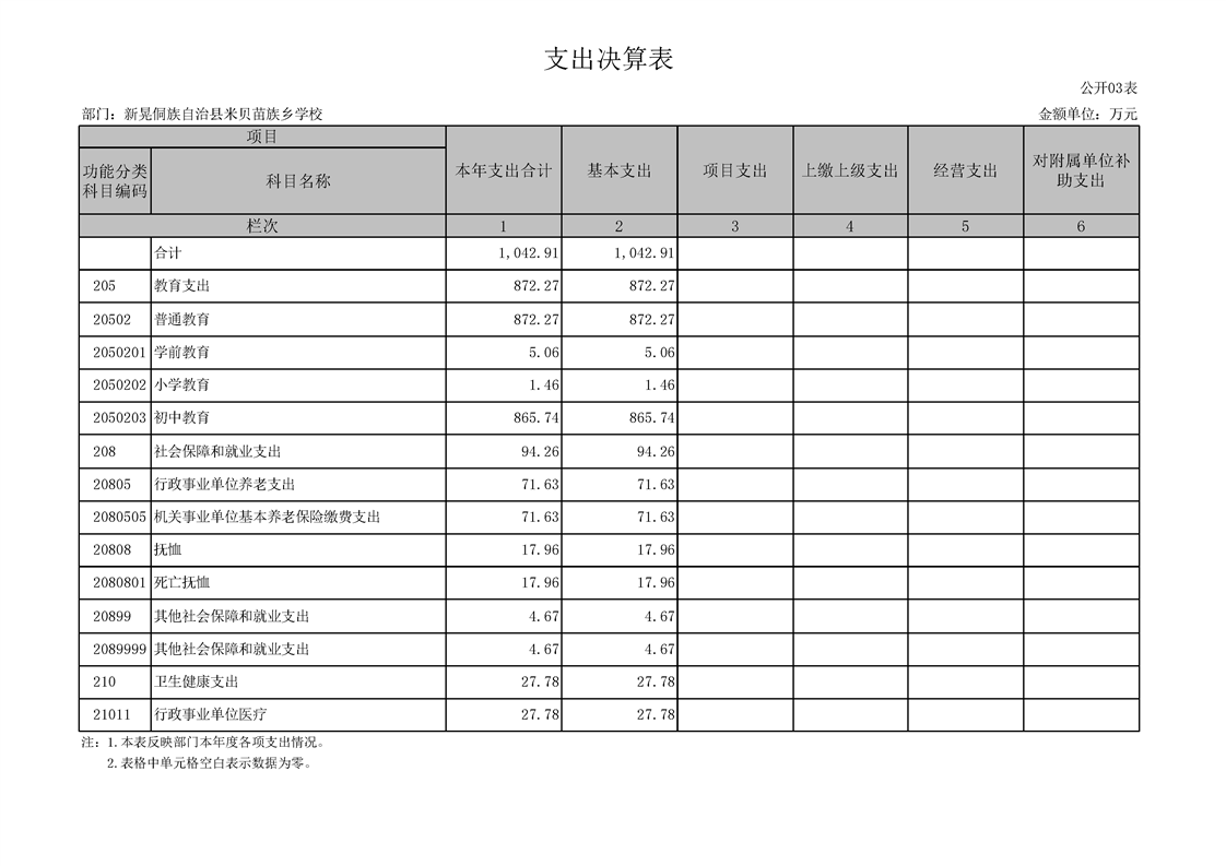 2024年度新晃侗族自治县米贝苗族乡学校部门决算公开表.xlsx