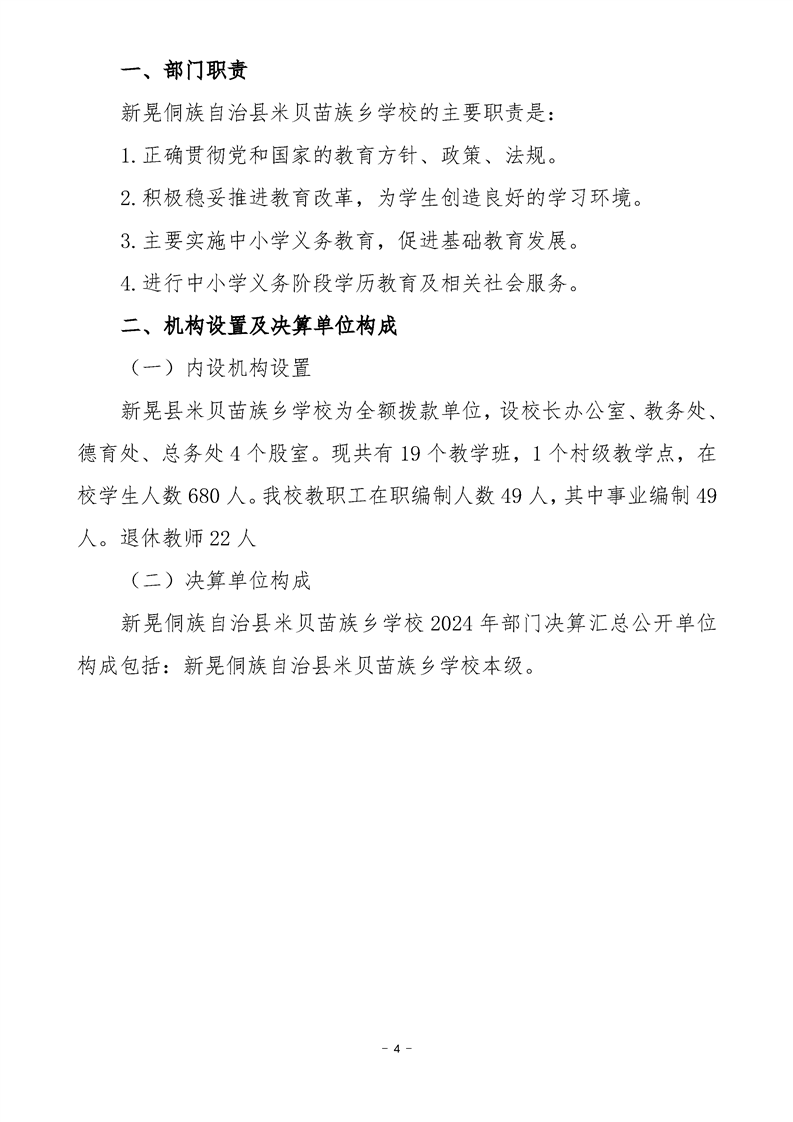 2024年度新晃侗族自治县米贝苗族乡学校部门决算