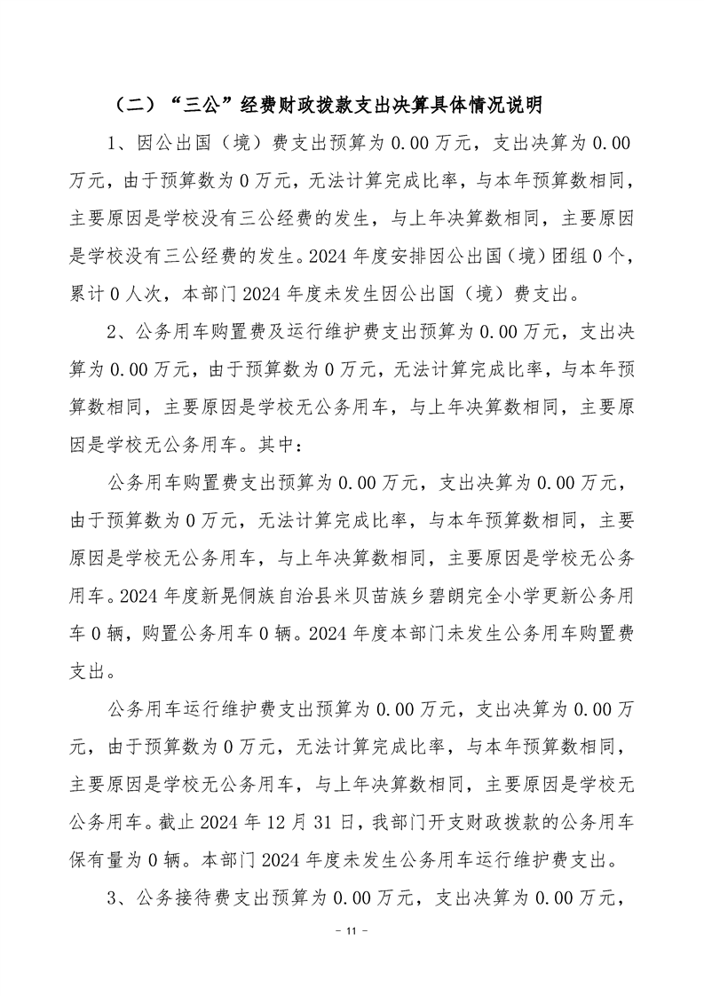 2024年度新晃侗族自治县米贝苗族乡碧朗完全小学部门决算
