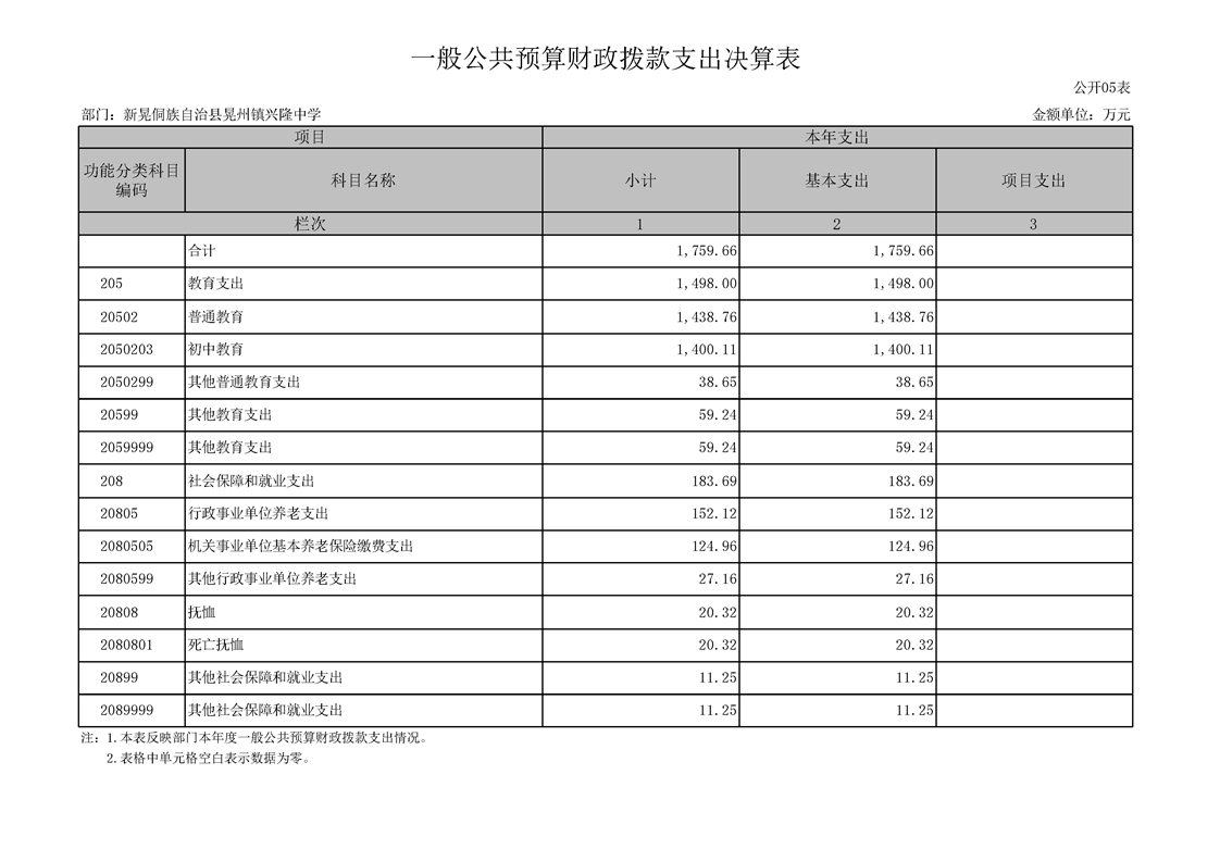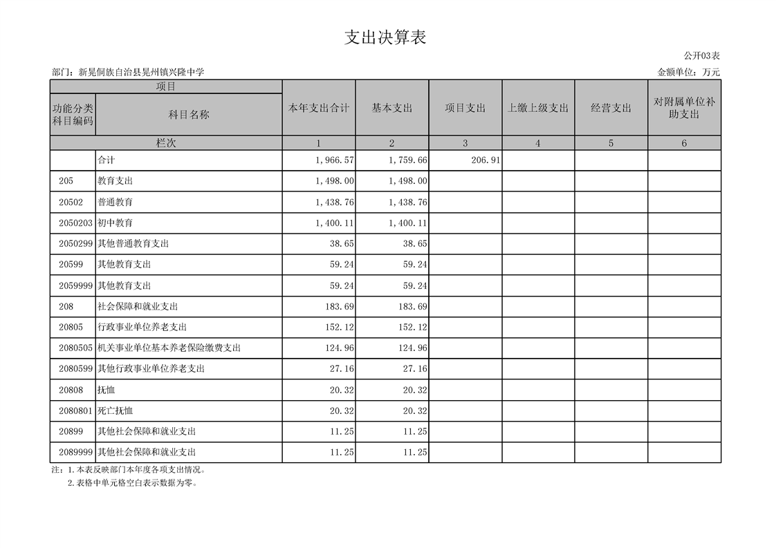 2024年度新晃侗族自治县兴隆中学部门决算公开表.xlsx