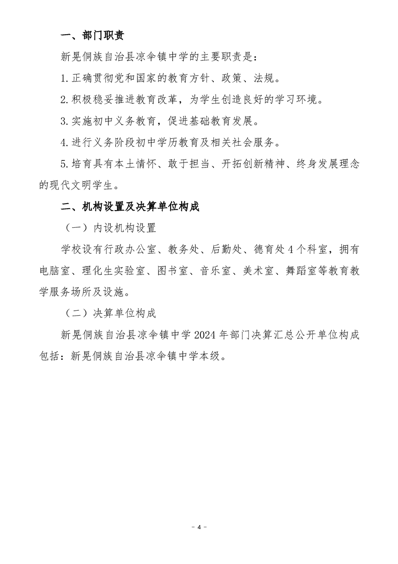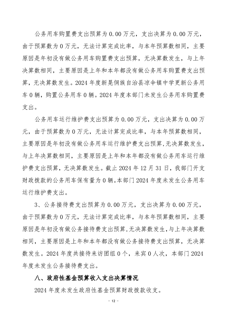 2024年度新晃侗族自治县凉伞镇中学部门决算