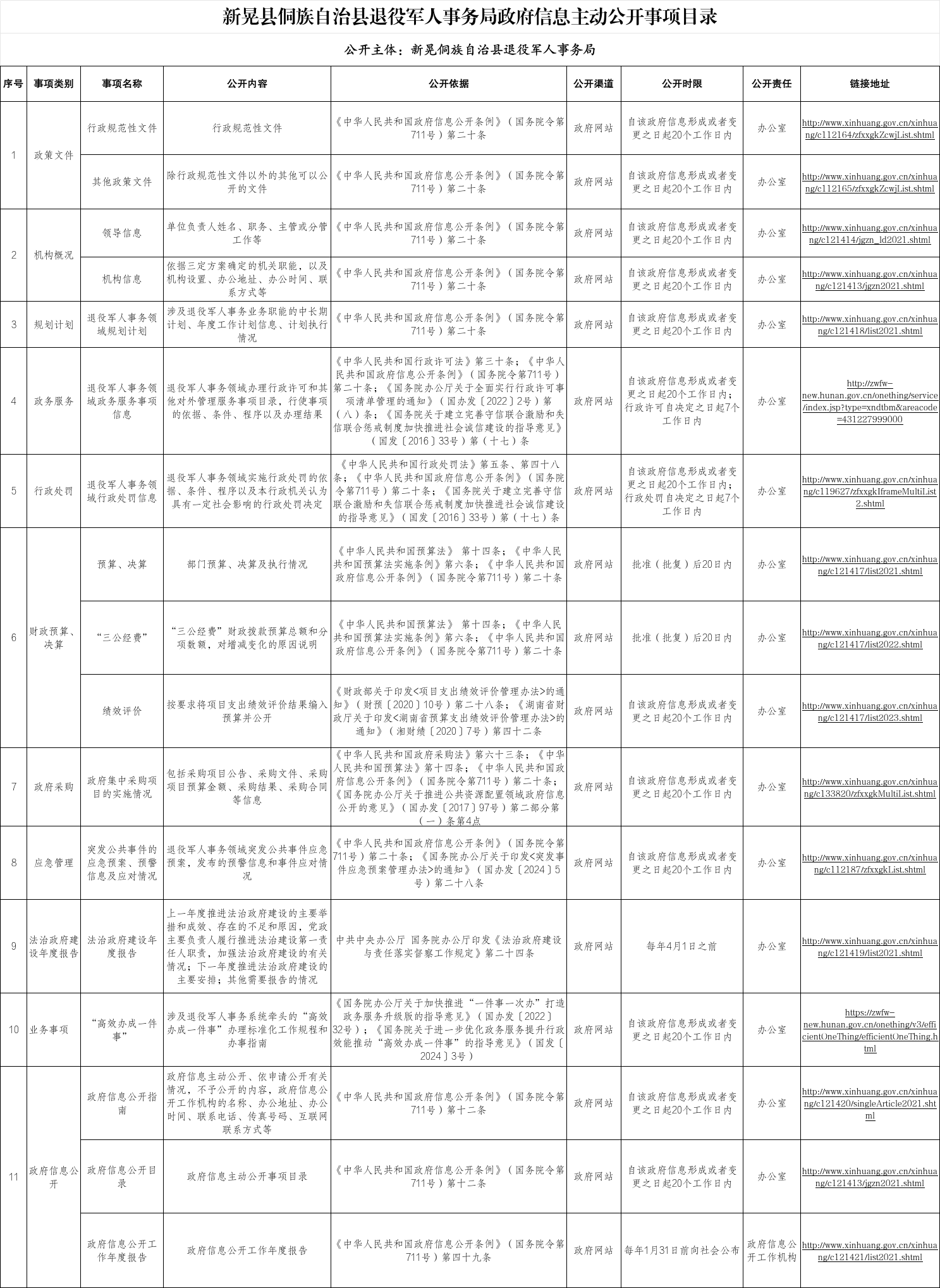 新晃县侗族自治县退役军人事务局政府信息主动公开事项目录