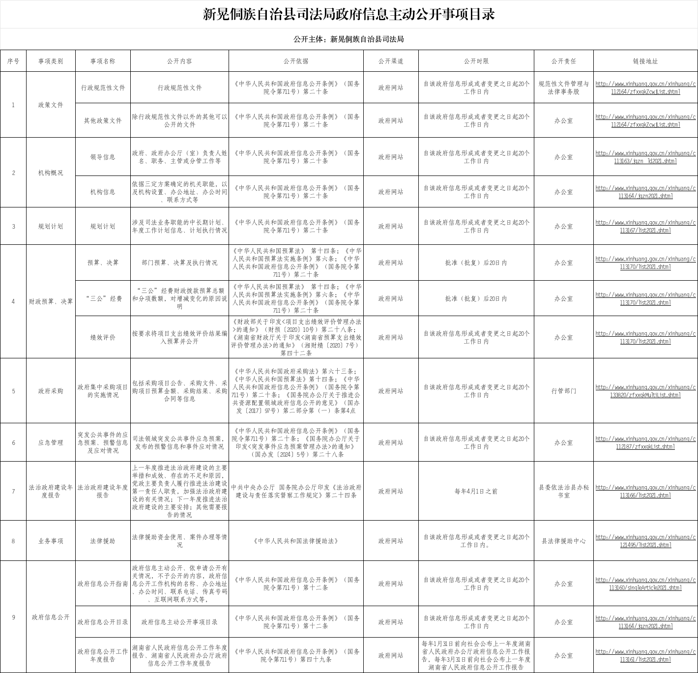 新晃侗族自治县司法局政府信息主动公开事项目录