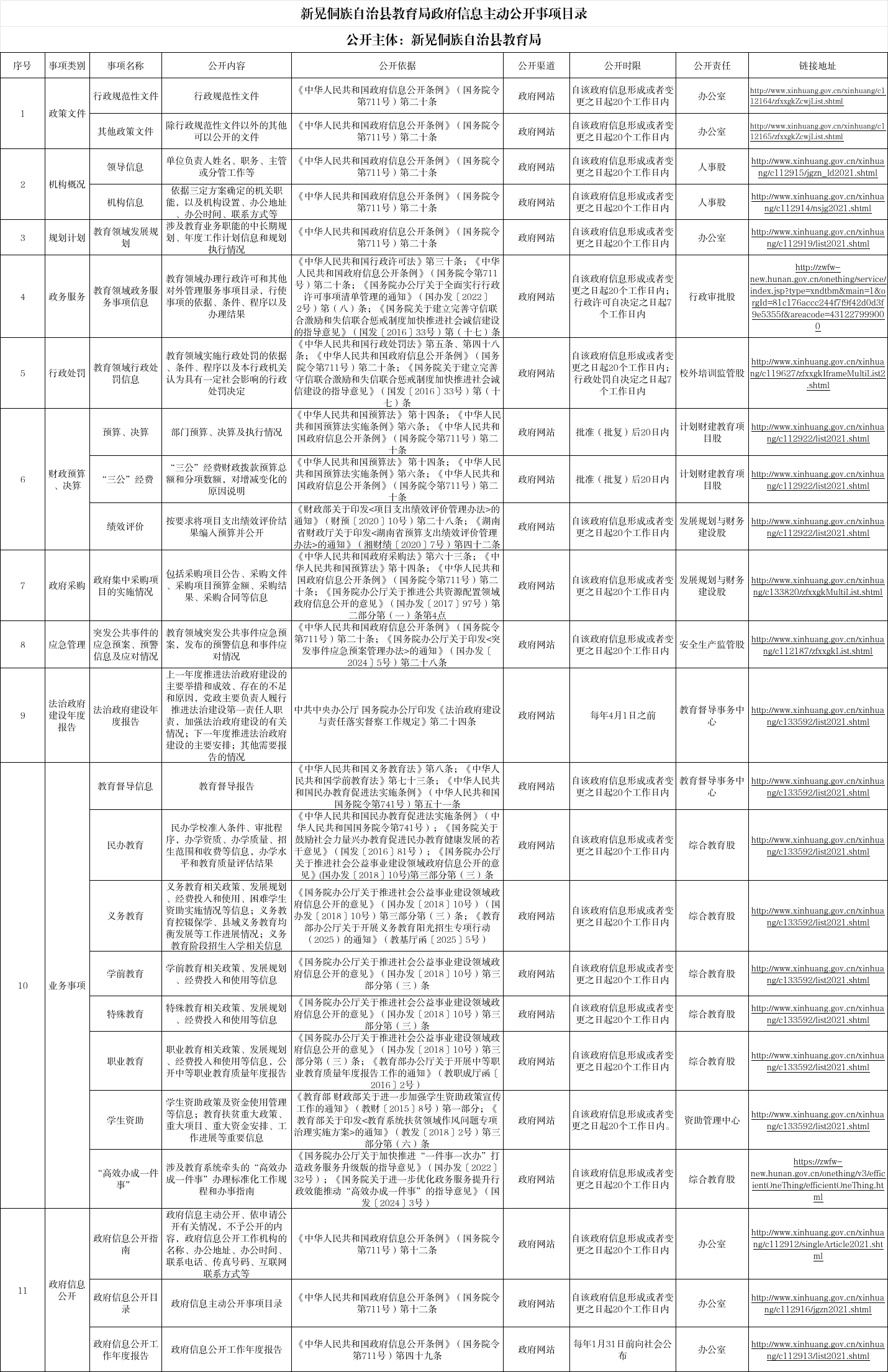 新晃侗族自治县教育局政府信息主动公开事项目录