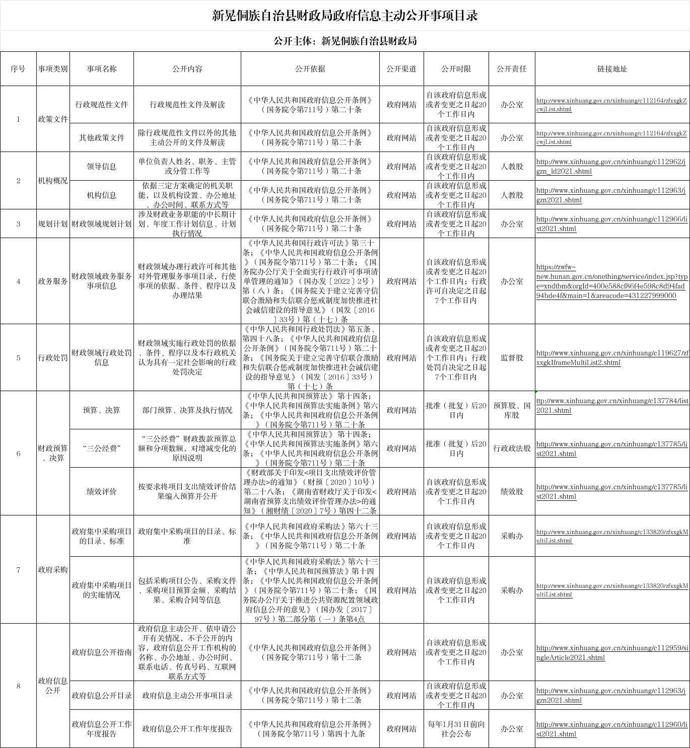新晃侗族自治县财政局政府信息主动公开事项目录