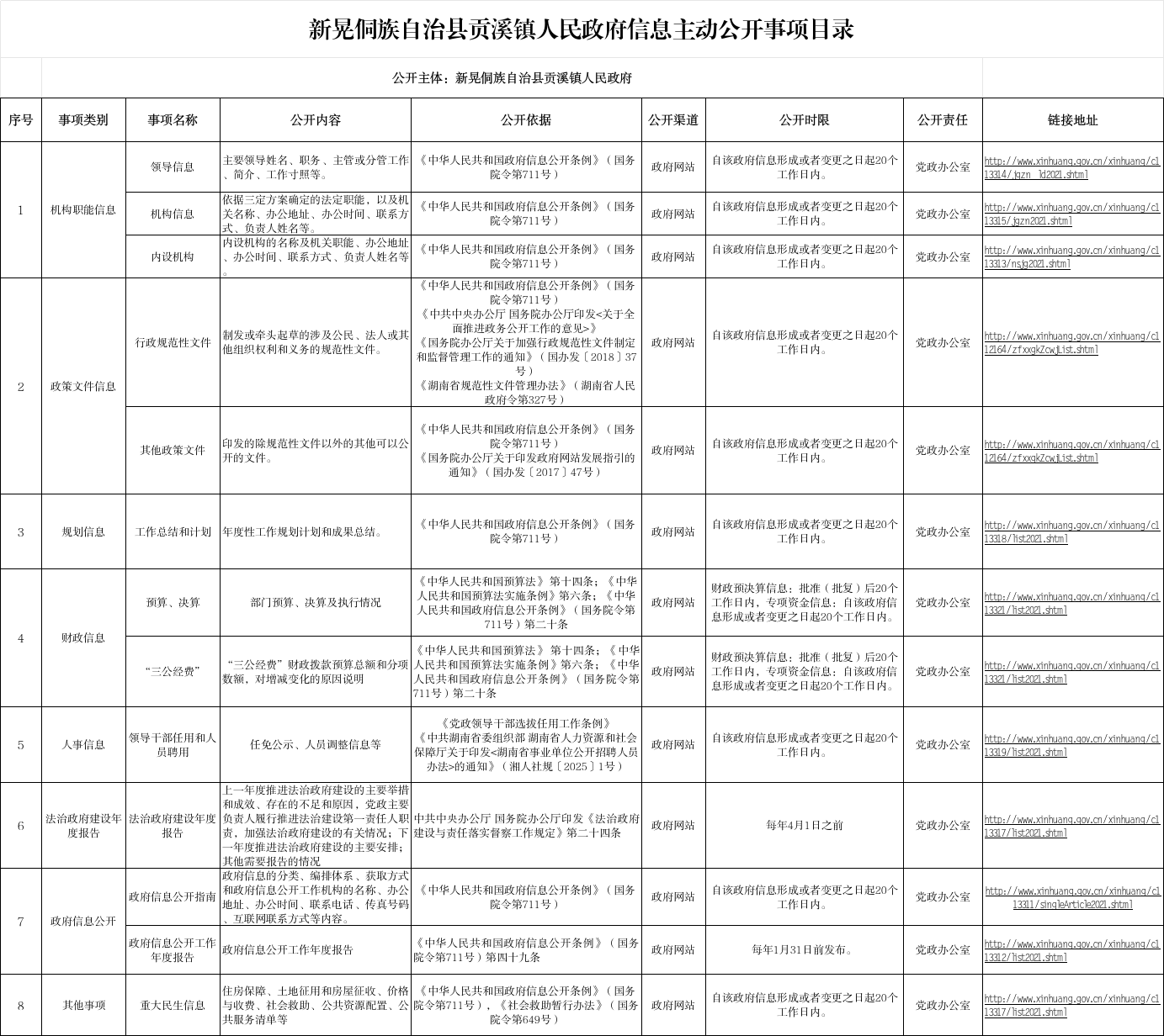 新晃侗族自治县贡溪镇人民政府信息主动公开事项目录
