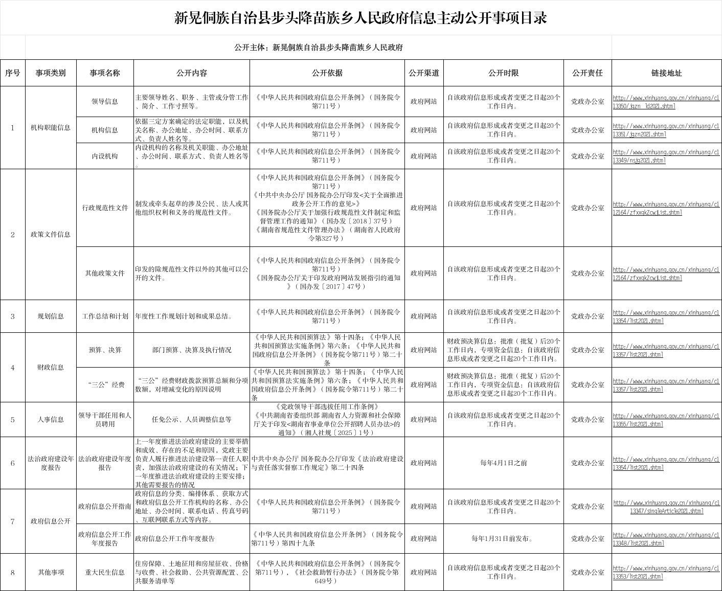 新晃侗族自治县步头降苗族乡人民政府信息主动公开事项目录