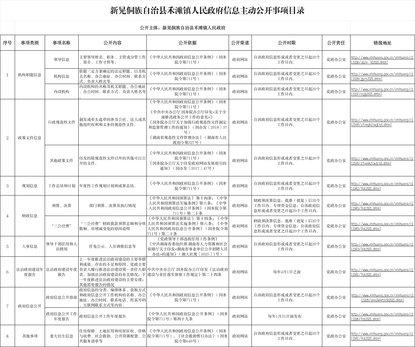新晃侗族自治县禾滩镇人民政府信息主动公开事项目录