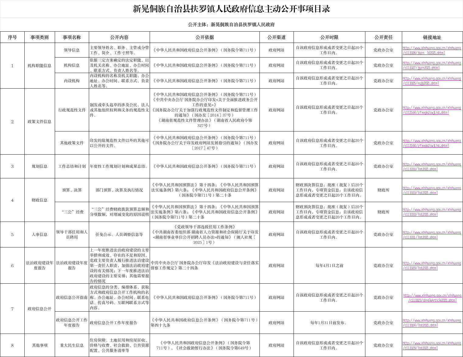 新晃侗族自治县扶罗镇人民政府信息主动公开事项目录