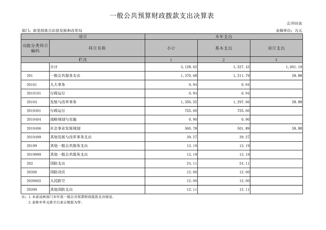 2024年度新晃侗族自治县发展和改革局部门决算公开表.xlsx