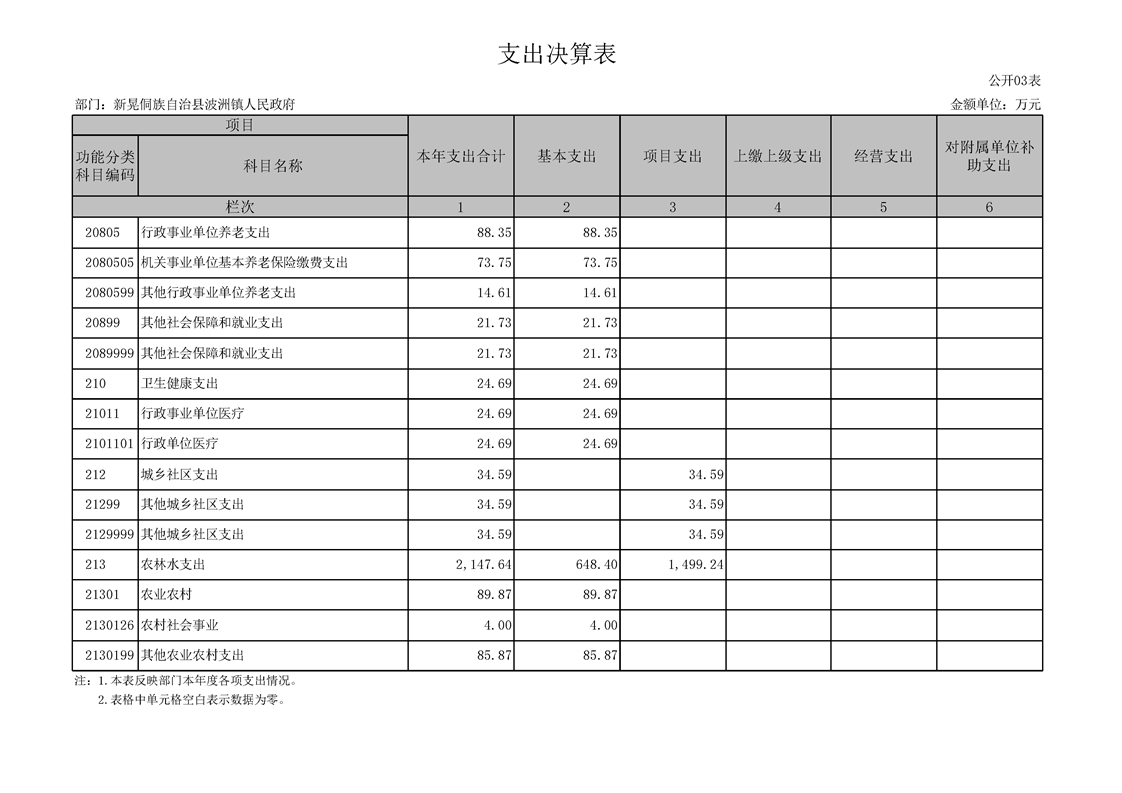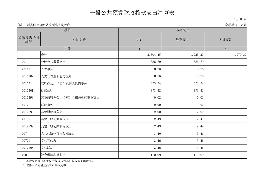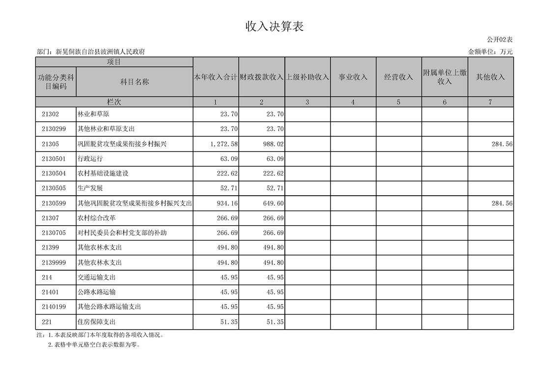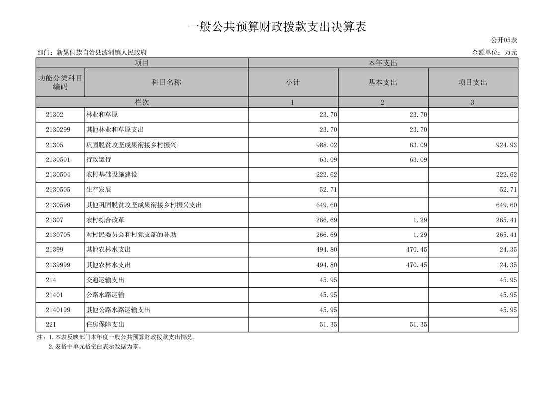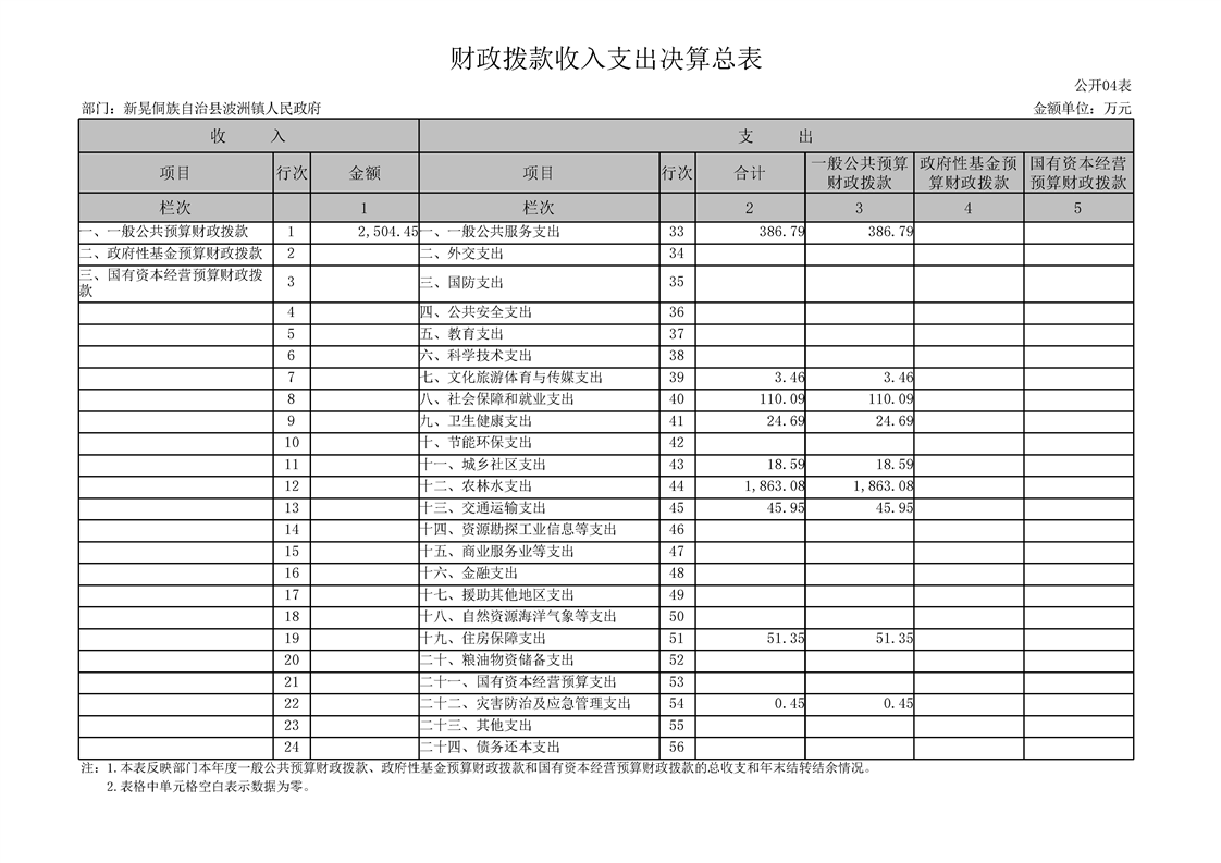 2024年度新晃侗族自治县波洲镇人民政府决算公开表.xlsx