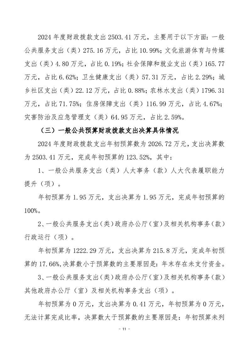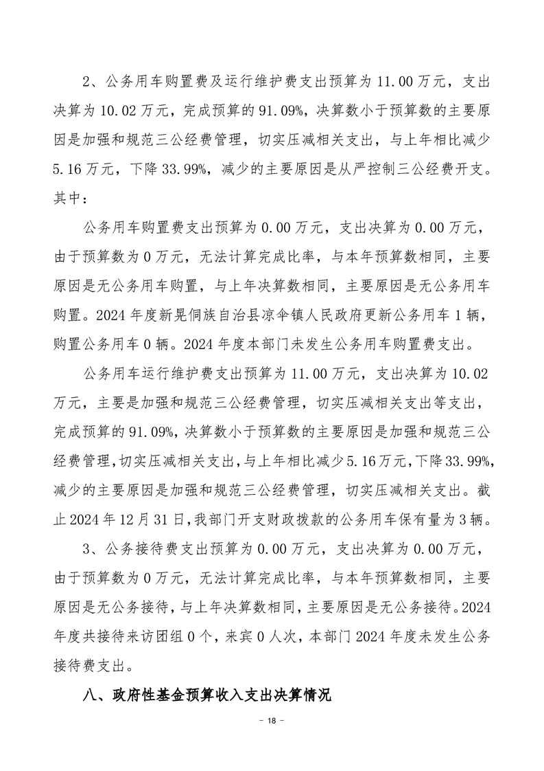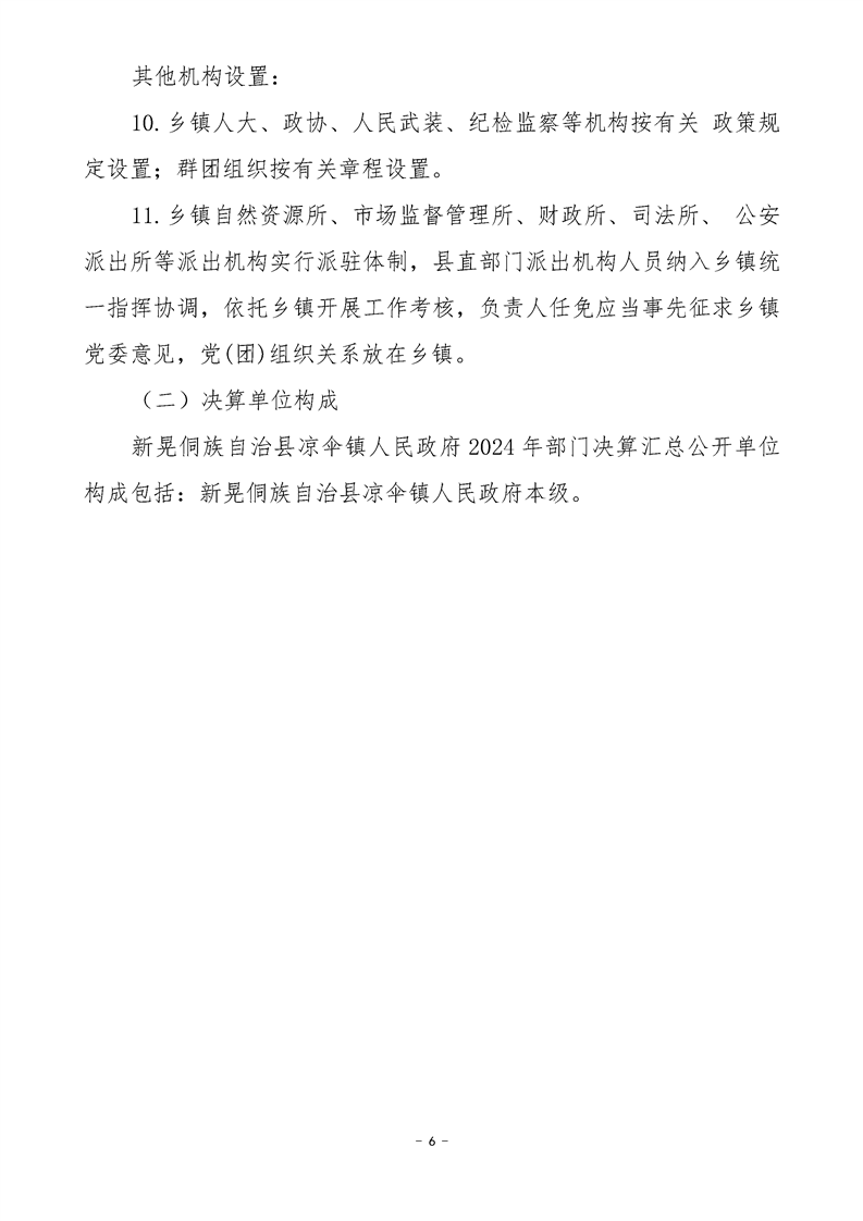 2024年度新晃侗族自治县凉伞镇人民政府决算