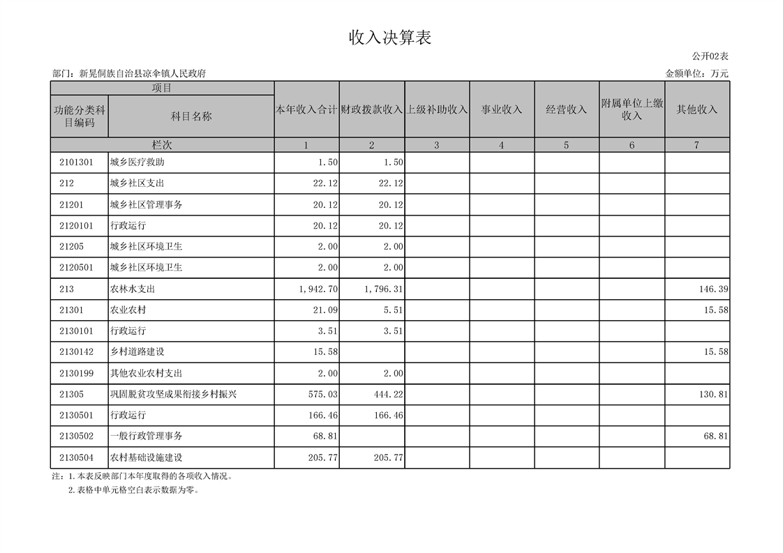 2024年度新晃侗族自治县凉伞镇人民政府决算公开表.xlsx