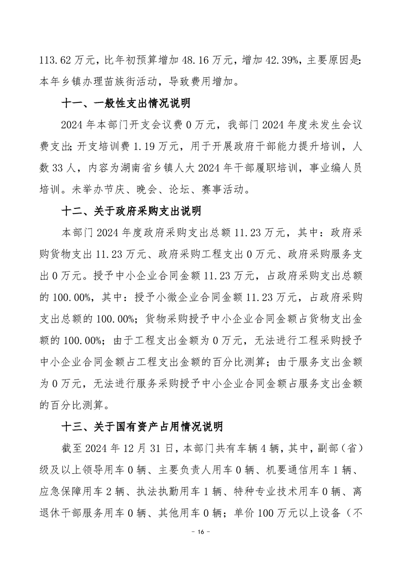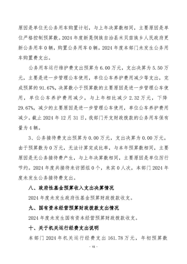 2024年度新晃侗族自治县米贝苗族乡人民政府决算