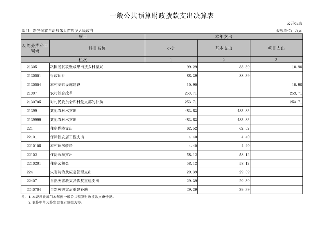 2024年度新晃侗族自治县米贝苗族乡人民政府决算公开表.xlsx